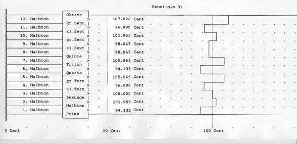 Cent) die Differenzen der Tonstufen zur Gleichstufigkeit markieren, ergeben