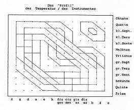 Die Größe der zwölf Halbtonintervalle (in Cent) in