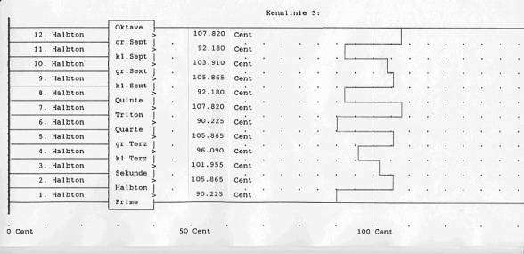 Die Größe der zwölf Halbtonintervalle (in Cent) in