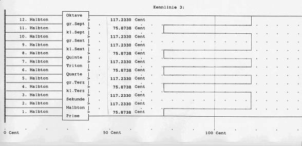 Die Größe der zwölf Halbtonintervalle (in Cent) in